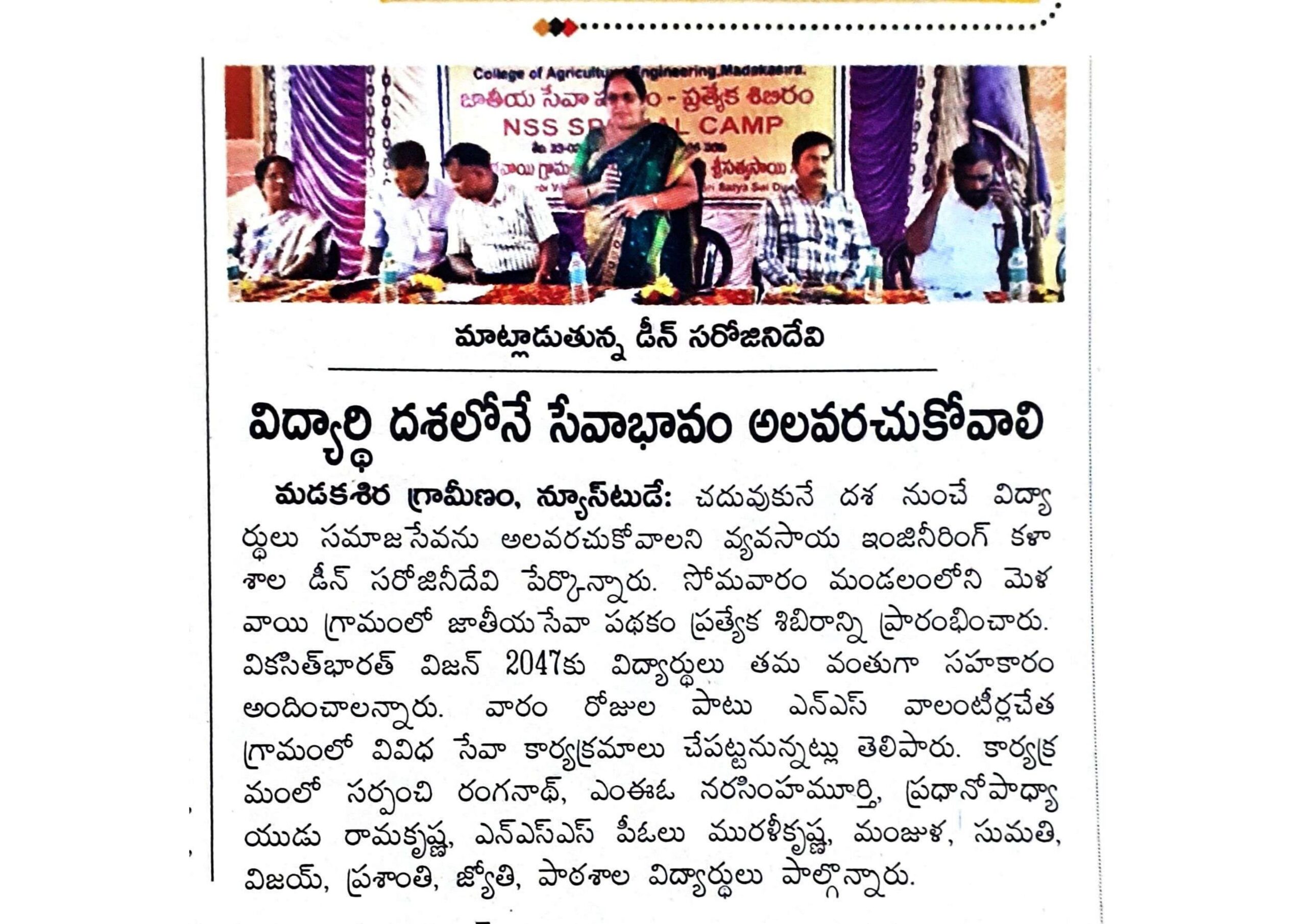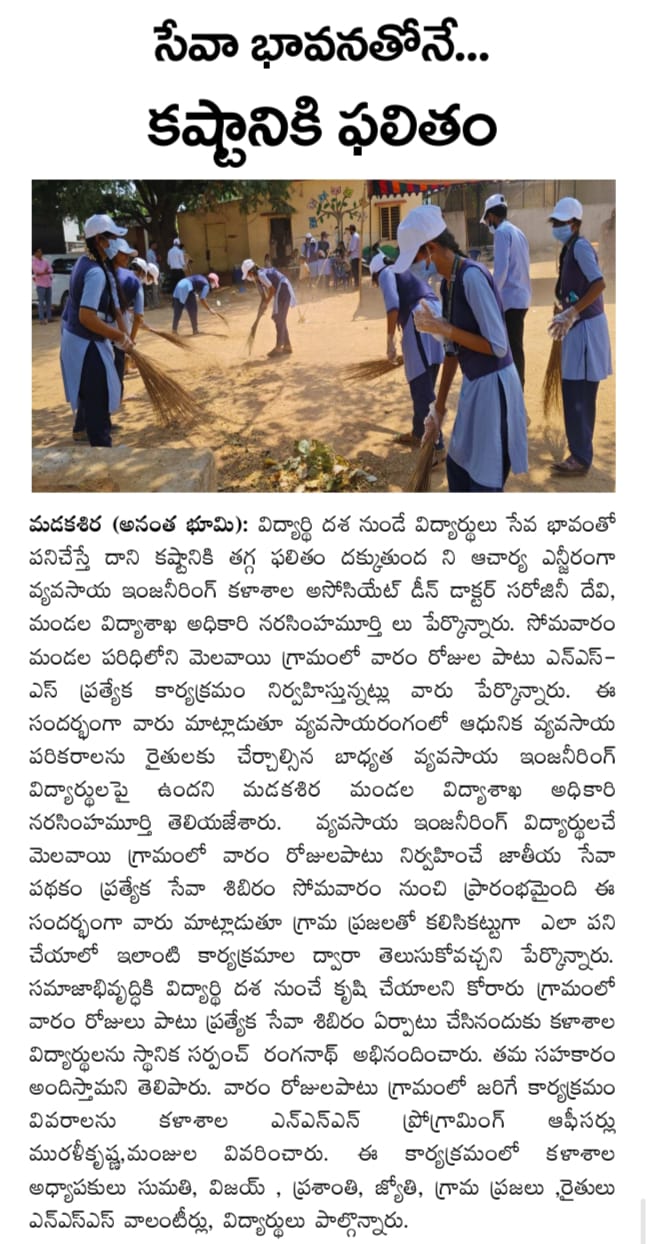 NSS Inauguration of NSS Special camp at R. Ananthapuram village, Madakasira Mandal,Sri Sathya Sai Dist. from 10.03.2025 to 16.03.2025 NSS Special camp at Melavoi village, Madakasira mandal from 23.02.2026 to 01.03.2026